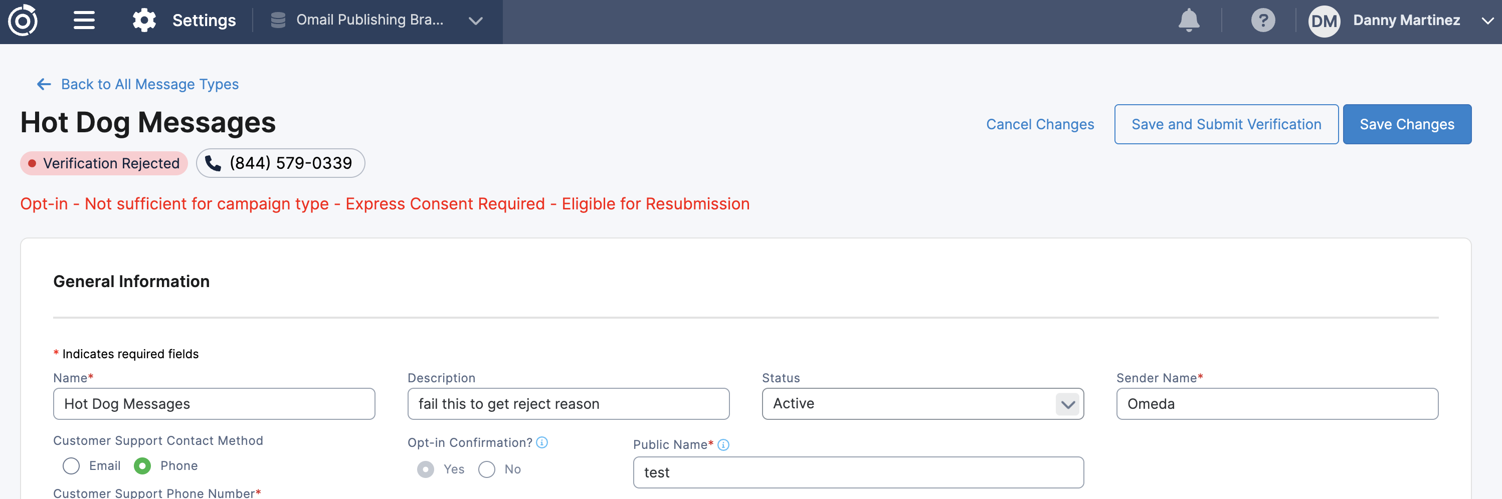 Users can now resubmit previously rejected SMS message types from the UI.