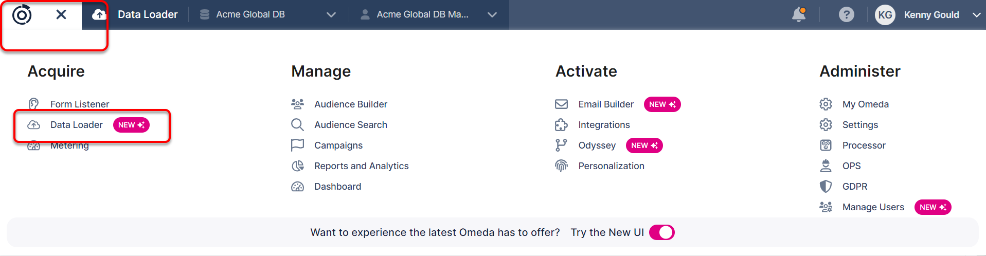 You can find Data Loader under Menu -> Acquire -> Data Loader