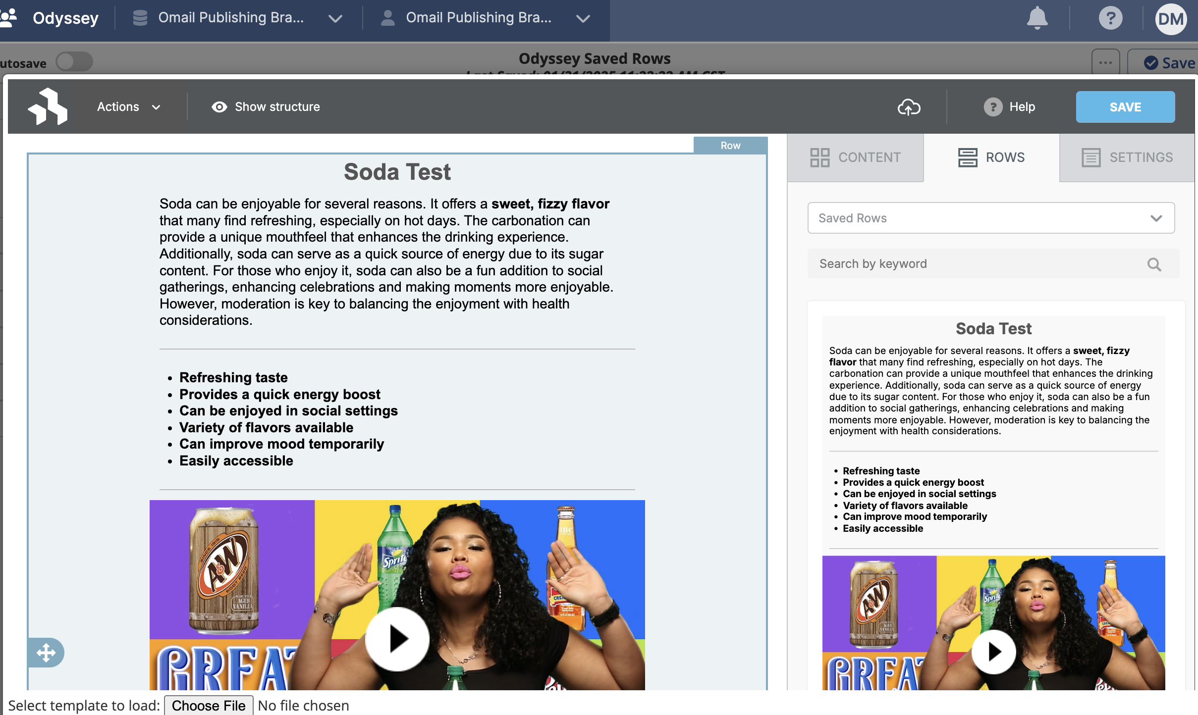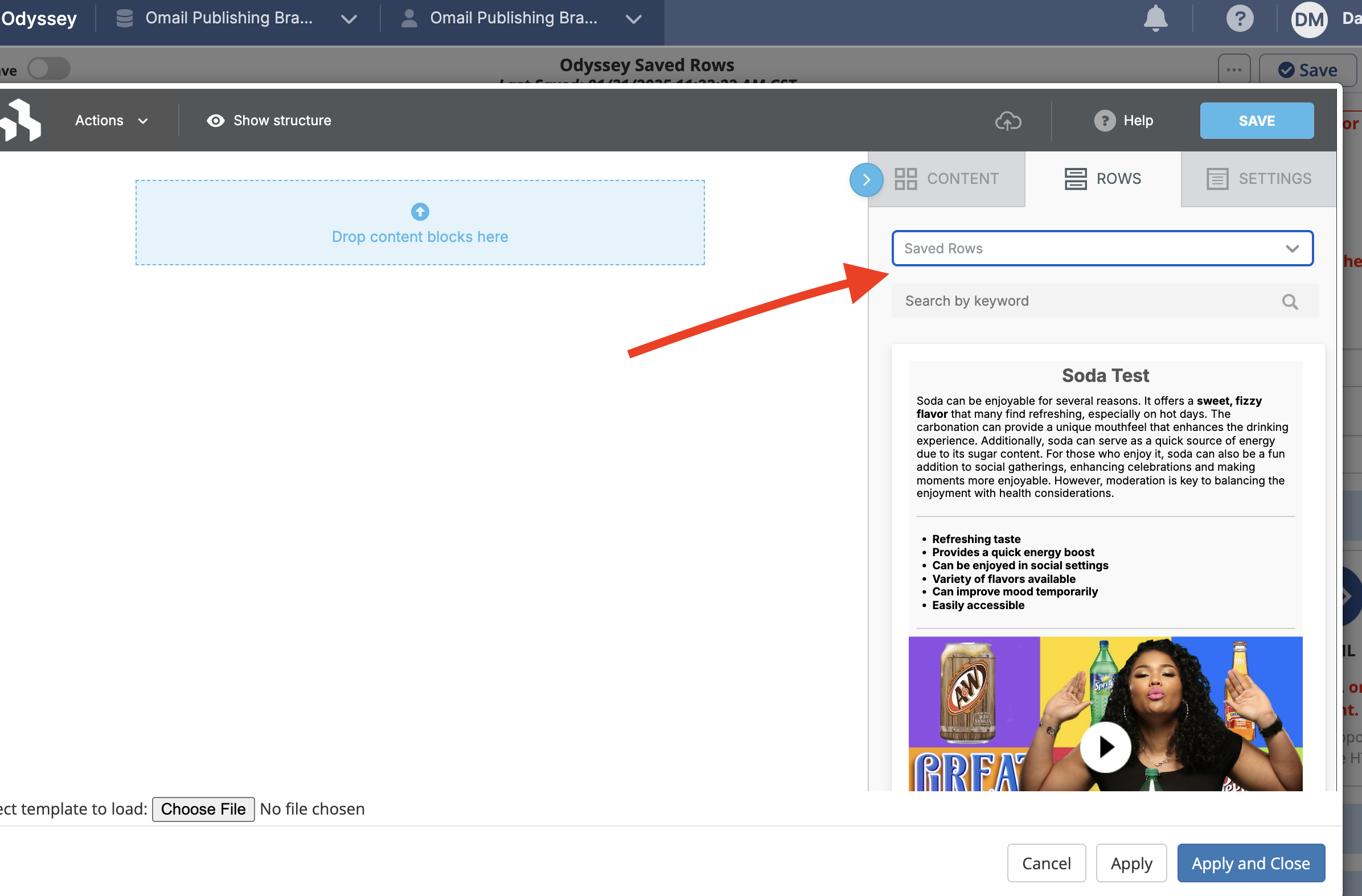 We’ve introduced the ability to save and reuse content rows in the Designer tool in Odyssey Email elements, allowing you to easily search for and insert previously configured blocks across all your voyages. These Saved Rows appear in the Designer’s Rows tab and retain their original settings upon insertion for all users within an account.