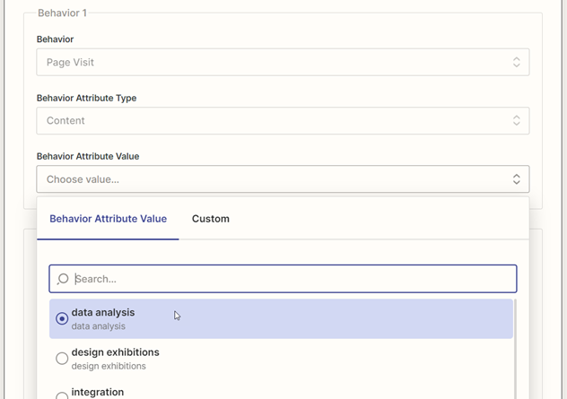 – Behavior Attribute Value: Once you click on this field, all active Behavior Attribute Values of the selected Type will appear. You will have the option to search for the Behavior Attribute Value and select the one to map to.
