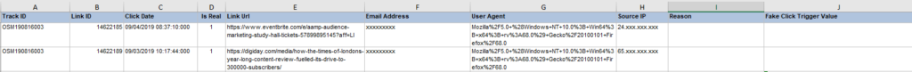 By examining the Click Date field, you can find the interval of the click activity which is one of the factors that is used to either count or negate click activity.