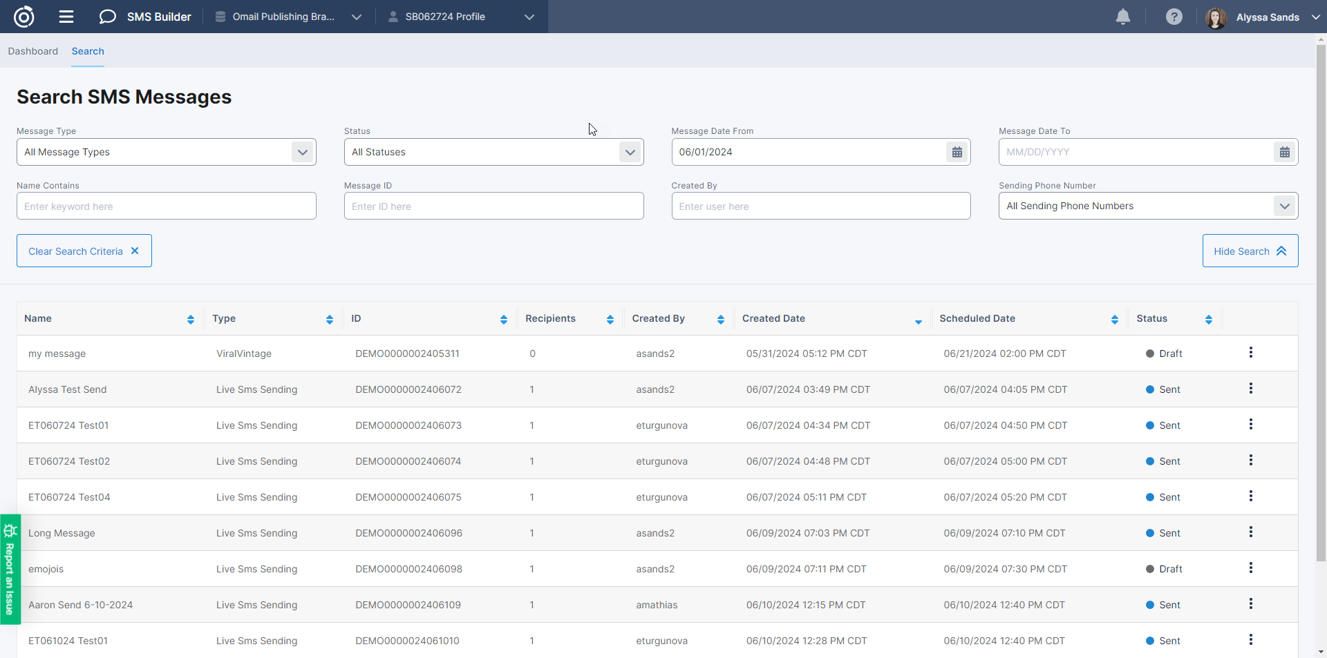 After a message begins sending, you can see information about the send from the View Report link on the search page.
